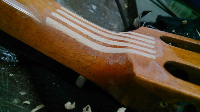 Aan de achterkant heb ik sleufjes gefreesd en daarin lamelletjes gelijmd.